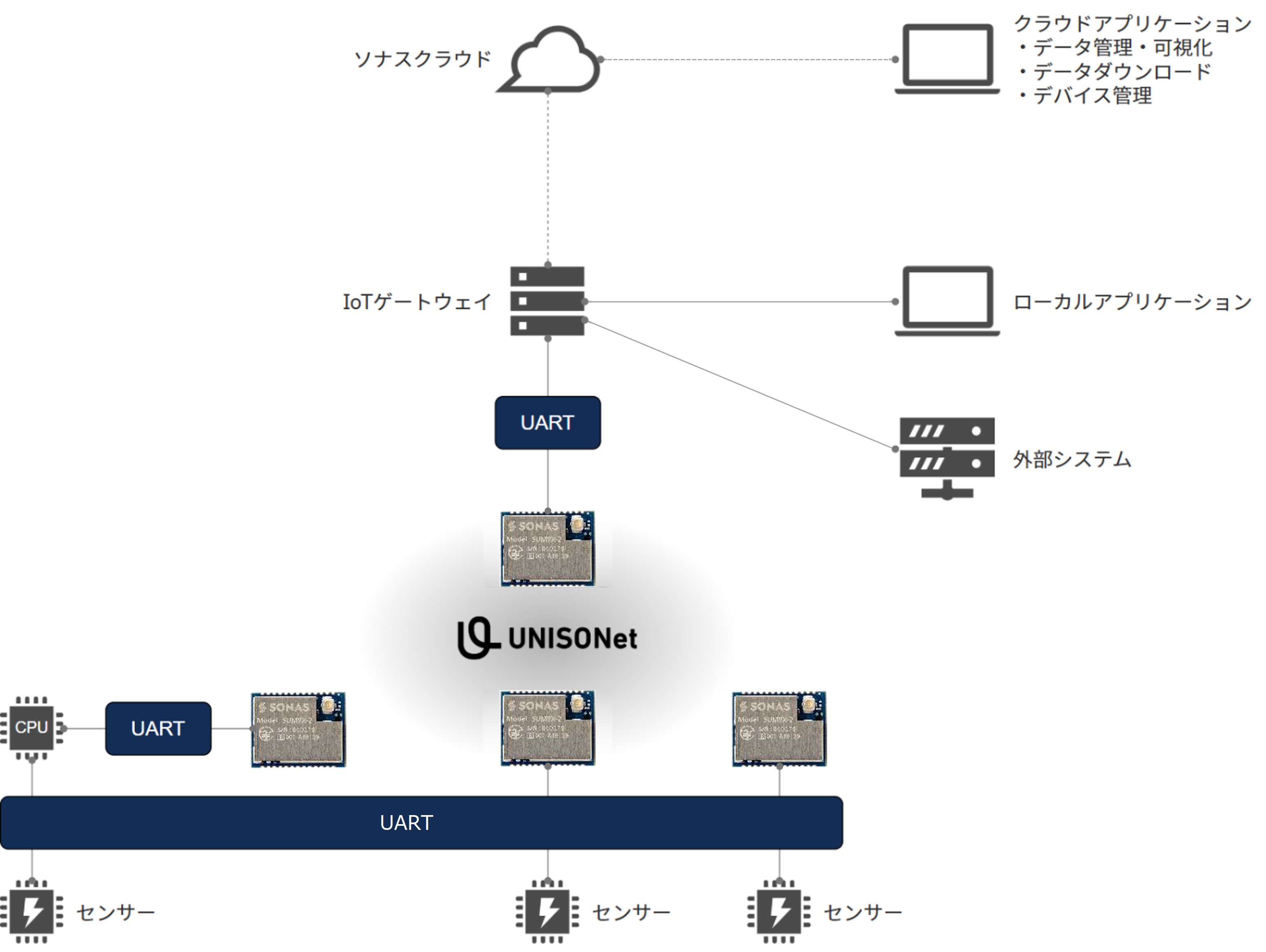 デバイスユニットとゲートウェイを一括管理し、UNISONetローカルネットワークの大規模展開をサポートします。