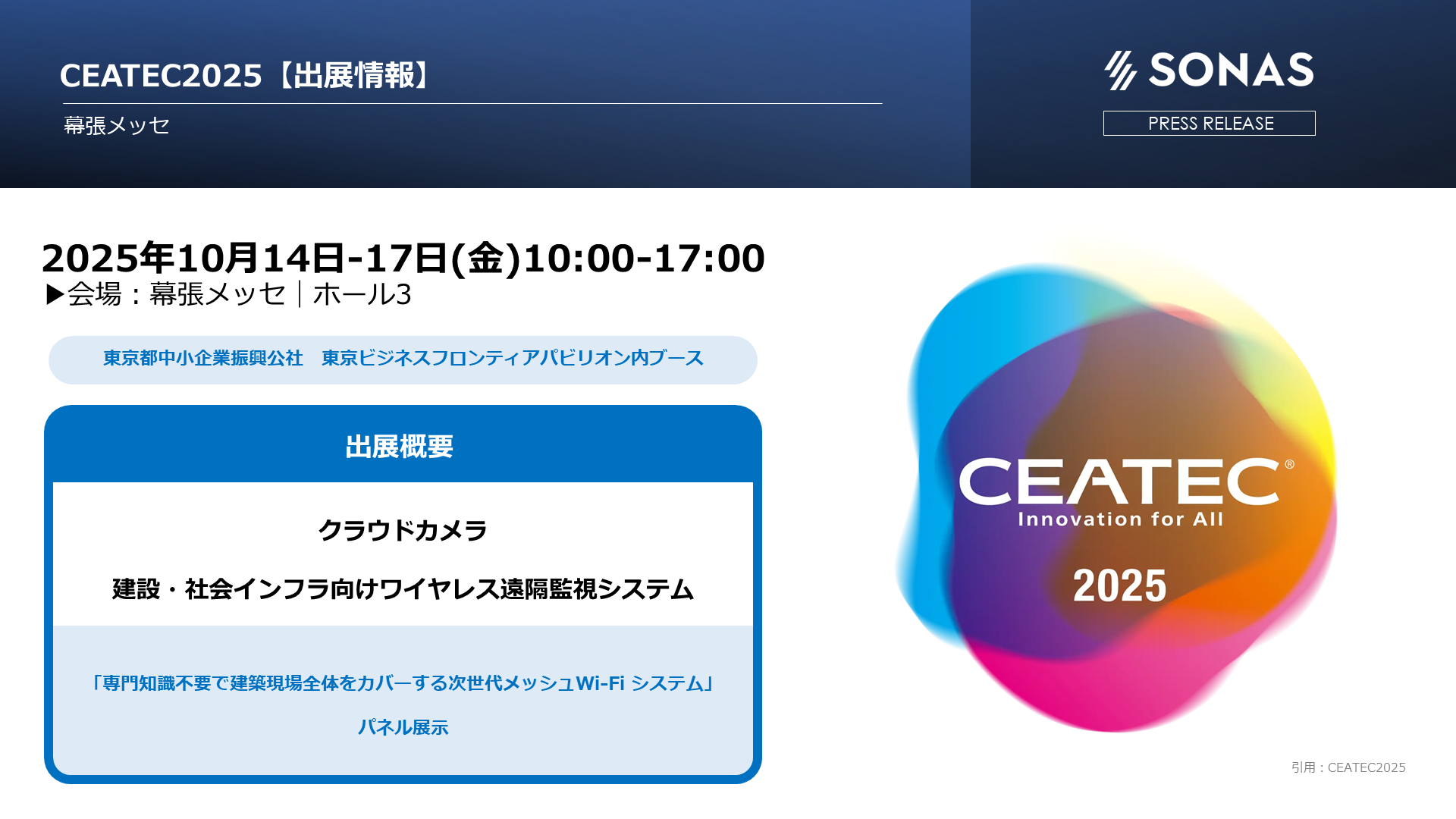 同会場内で現在開発中の「専門知識不要で建築現場全体をカバーする次世代メッシュWi-Fi システム」のパネル展示も行います。こちらにもぜひお立ち寄りください。